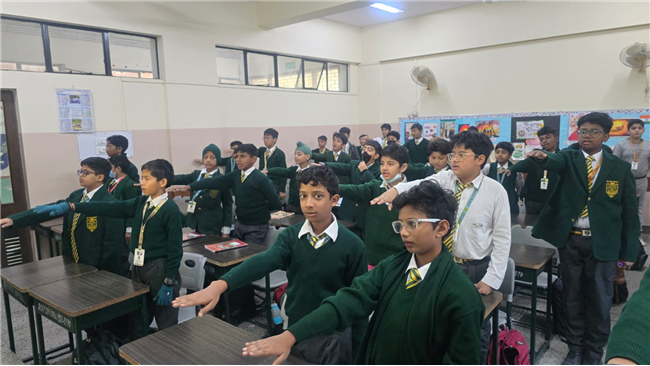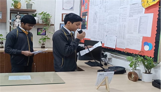 intercom assembly conducted by the students of Class 9 A — Aditya Sinha and