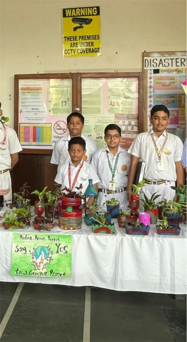 organized a plastic recycling exhibition. Beautifully crafted plastic pots,