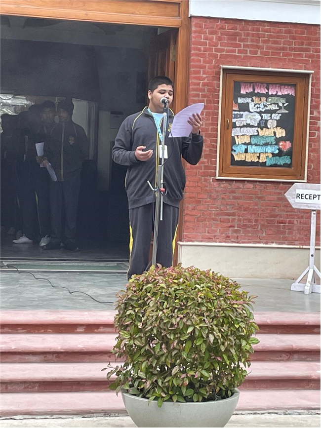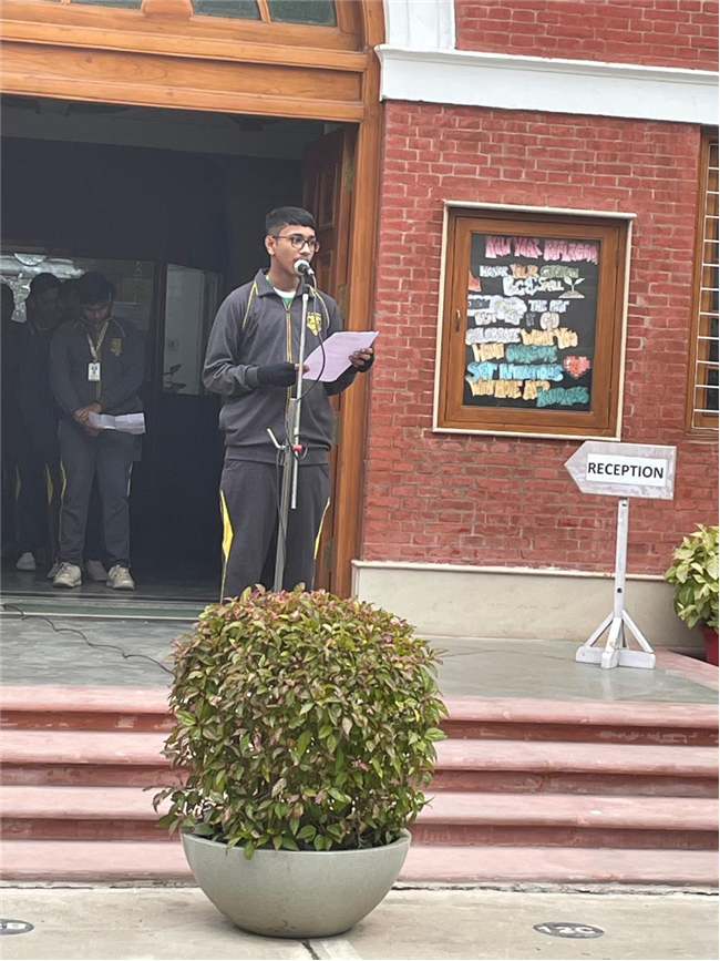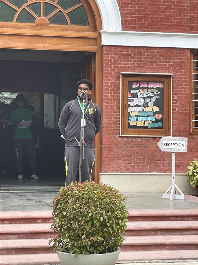 school assembly held on 19 January 2026, presented by Class 11 D under the