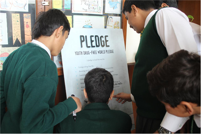 formally signed by students, affirming their commitment to lead a drug-free