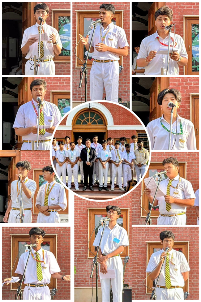 Class 12-E conducted a thought-provoking morning assembly on the occasion of Earth Day, presenting a perspective that moved beyond the conventional narrative of environmental conservation. The students highlighted the urgent need to protect Mother Earth by critically examining the role of large corporate entities in deforestation and environmental exploitation for economic gain.