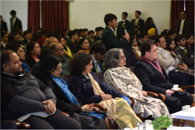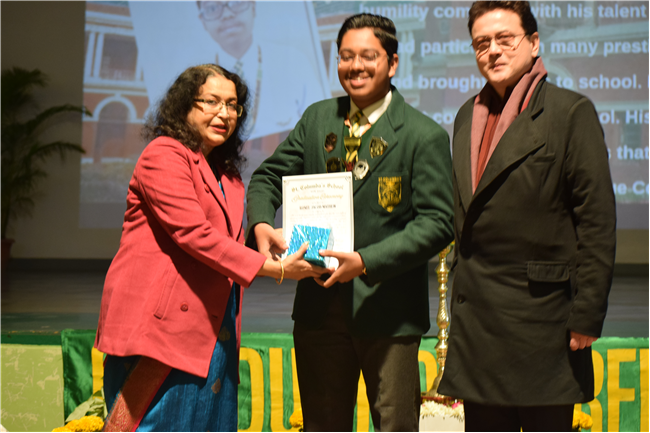 Each student of class 12 was presented with a citation certificate and a tie and pocket square as a memento from school. The citations had been painstakingly written by the class teachers for each student. As each student received his memento, his citation was displayed on the screen for all to see.