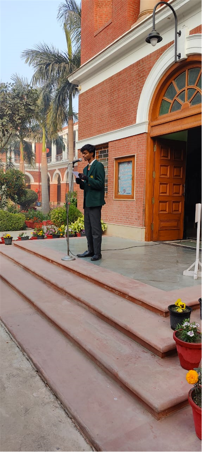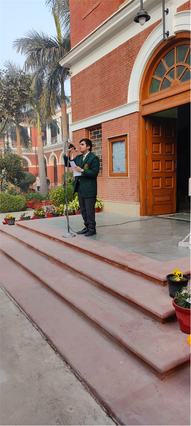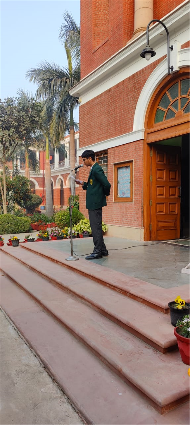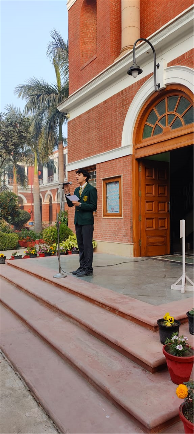 school assembly held on 19 January 2026, presented by Class 11 D under the