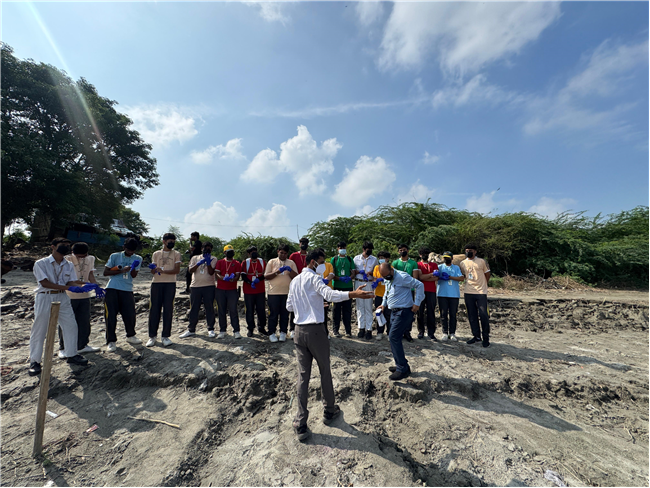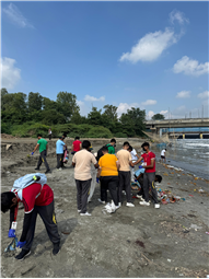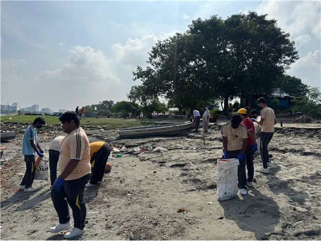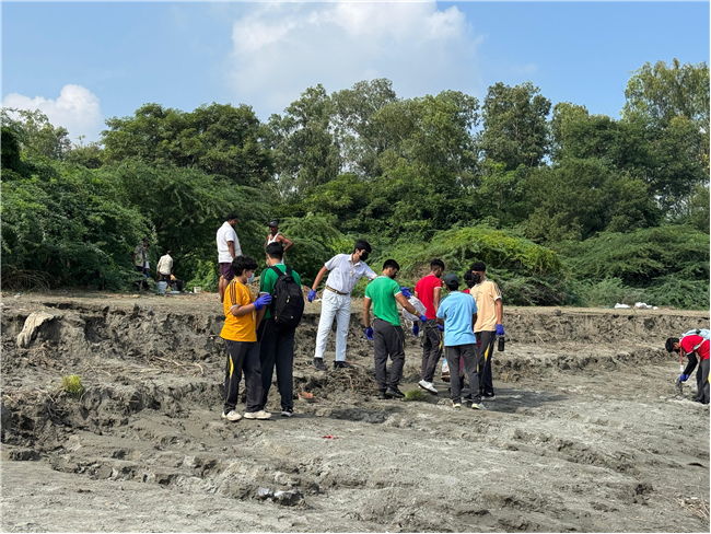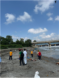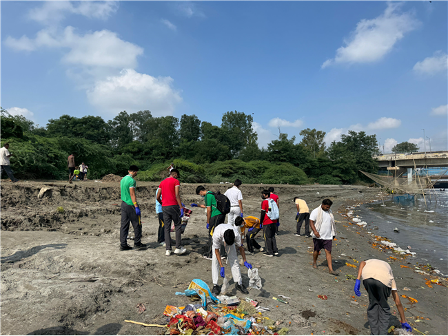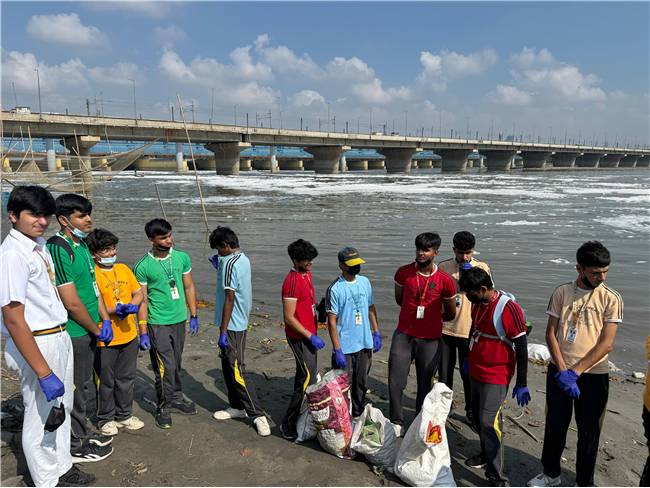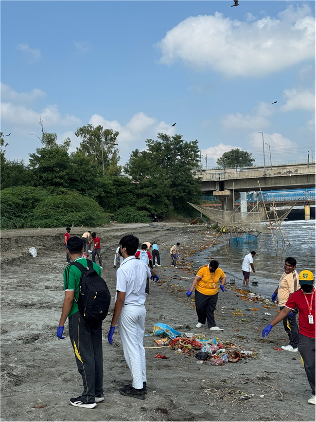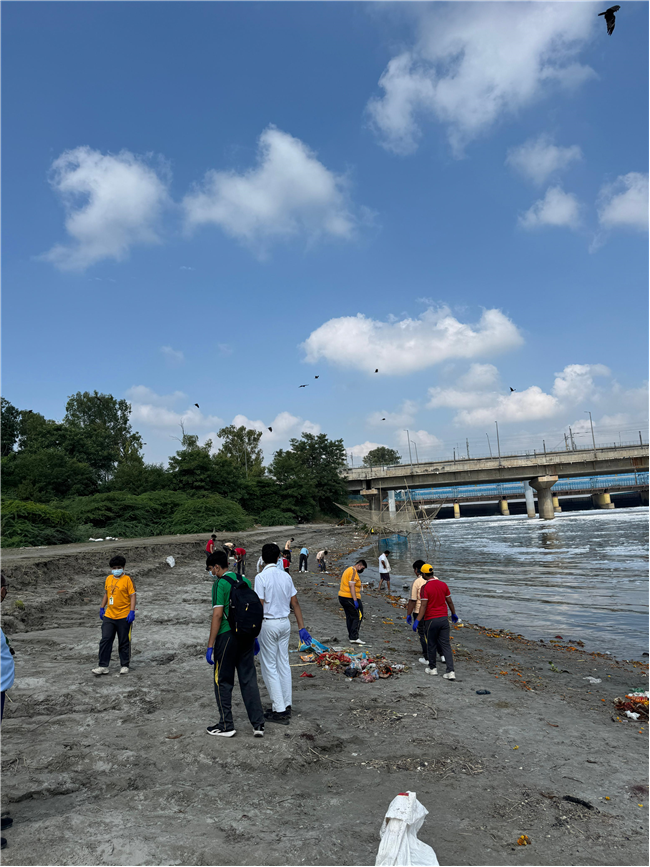 Kalindi Kunj Ghat. A group of enthusiastic students. visited the Yamuna banks