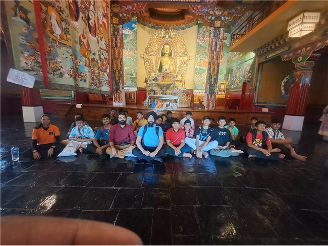 A trip to Dharamshala was organized for the students of class 8 to 10. Twenty students were sent with two teachers in the evening of 23rd May 2024. Along with the Journey students enjoyed the fresh & relaxing weather of Dharamshala. The trip was fully packed with visits to multiple places which were a perfect combo of knowledge and enjoyment. During their trip students were taken to Dharamshala Cricket Stadium, War Museum, Dalai Lama Temple, MacLeod Ganj Mall Road, Dari Govt. School, Norbulinka Dall Museum and Temple and Wah Tea Estate. On one hand this trip made the students feel proud of their country, on the other hand it provided a spiritual vibe too. In addition to this, they were provided with the knowledge of culture of Himachal Pradesh by a traditional dance group. An enjoyable trekking to a waterfall added excitement to the flavour of the trip. Interaction with the students and the Principal of Dari Govt. School was really enriching for our students. At Wah Tea Estate the students were properly explained about the processing of tea from plant to cup. Songs by the students in the bus made the trip unforgettable for all of them.