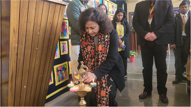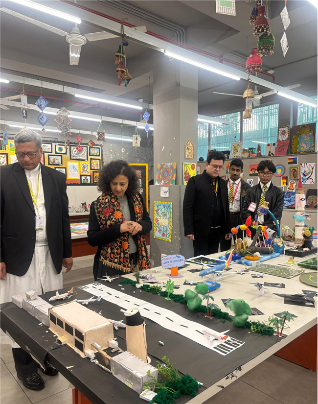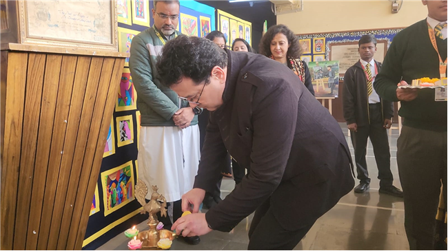 The exhibition was graced by the presence of Principal Brother Robert Fernandes, Brother Angelo Benjamin, Mr. Naresh Chopra (Headmaster XI-XII), Mrs. Ritu Kaushal (Headmistress KG to III), and Coordinators Mrs. Shashikala Shaji, Mrs. Ranjana Chug, and Mrs. Hima Simon. The morning of 22nd January 2026 commenced with the inauguration of the art exhibition, followed by the lighting of the lamp by our esteemed guests. The guests lauded the students for their ability to harmonize diverse cultural influences, noting that such initiatives foster a deeper understanding of global heritage.
