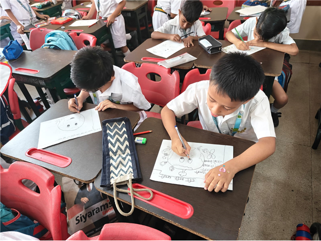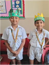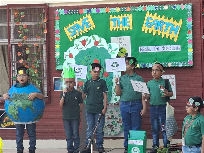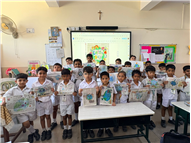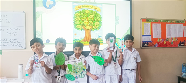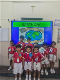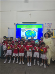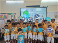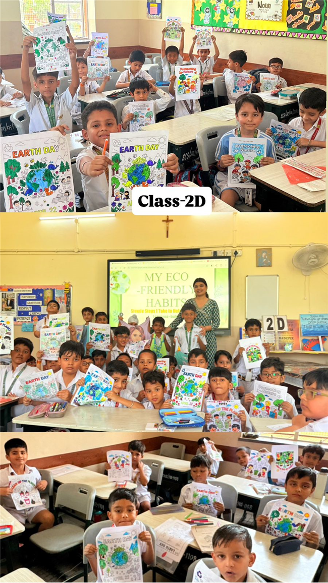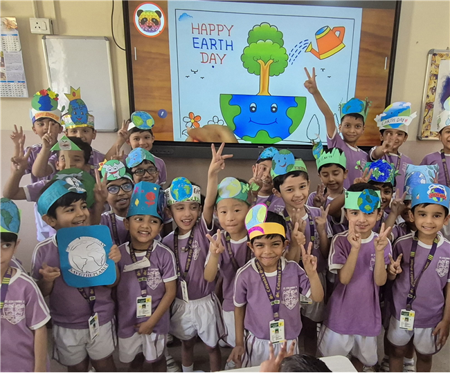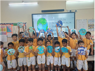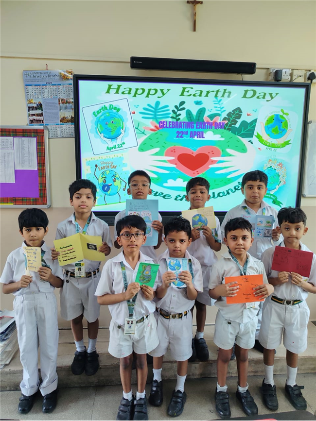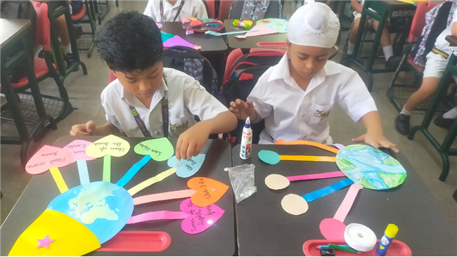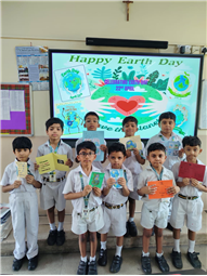 Boys of Class 2A wrote ways to protect the earth on leaf cutouts, assembling them into an Eco-Friendly Acts Tree alongside crafting earth-themed bookmarks, whereas Class 2B expressed the spirit of recycling through colourful drawings on newspaper. Enthusiastically joining in, Class 2D upcycled old T-shirts into cloth bags and designed vibrant posters championing reuse and sustainability, while Class 2E made headgear and pledged to switch off fans and lights when not in use. Adding their own creative touch, Class 3A created posters with the slogan 'Love Your Planet' and made hand imprints highlighting five ways to save the earth. Not to be left behind, Class 3B crafted colourful nature crowns celebrating trees, water and the planet, while Class 3D designed Earth Day Bingo Cards with thoughtful ways to protect Mother Earth. Rounding it all up beautifully, Class 3E put together vibrant wall hangings carrying messages on saving water, planting trees and reducing waste — each a heartfelt pledge for a greener future.