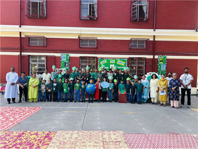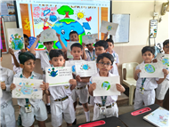 The message of going green and saving our beautiful planet then travelled into every classroom, as boys from KG to Class 3 brought it to life in their own wonderful ways — the KG boys planted saplings and made earth-themed posters and hand prints, whereas Class 1A brought their own plants pledging 'Each One Plant One’.