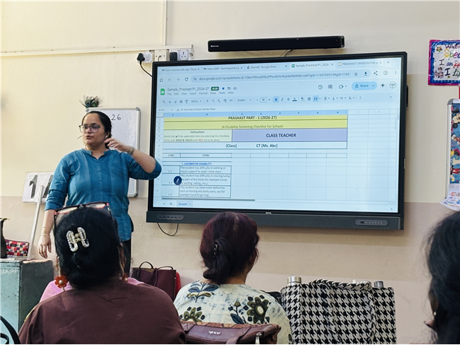 On 24th April 2026, St. Columba's Junior School organised a session conducted by the Special Educators from the Learning Centre, in collaboration with the teachers, to review the PRASHAST checklist, aiming to strengthen the early identification of Children with Special Needs (CWSN).