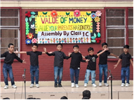 assembly continued with a cheerful action song, “Save Your Money,” encouraging